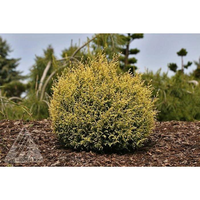 Buy Cream Ball Sawara False Cypress online. The unique color of the compact ‘Cream Ball’ is neither white nor yellow, but more a rich shade of cream, that will complement many landscapes. A close look at the foliage shows that a range of colors and textures, including bluish needles and green scales that are tipped with blonde, contribute to the glowing effect. The well-mannered, easy-to-grow conifer maintains a uniform globe shape without shearing and makes a dressy accent or, lined up, an attractive border edge.