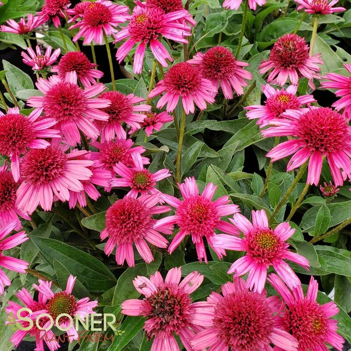 Buy Delicious Candy Coneflower online. ‘Delicious Candy’ was developed by Marco van Noort and is considered to be one of his most prolific and best introductions into the Echinacea genus. It features double flowers that are a dark pink that appear early in growing season. Green foliage adds beautiful contrast throughout the year.
