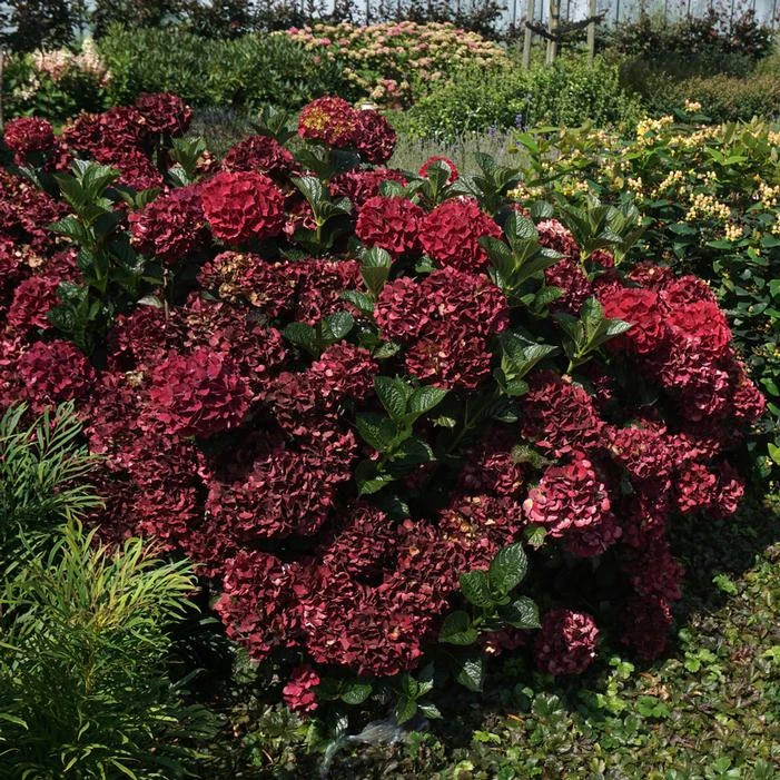 Buy Magical® Everlasting Crimson Hydrangea online. A true red-flowering hydrangea! Magical® Everlasting Crimson Hydrangea is an excellent plant that you won’t be disappointed to own and admire, as it brightens up any shady landscape! Flowers begin as green with hints of red, and will darken to deep crimson red as they mature, and this show happens all summer long due to its repeating blooming qualities. It’s also been bred to be a compact grower with strong stems, so flopping is held to a minimum. It’s a must-have for those seeking a true red color in their landscape!