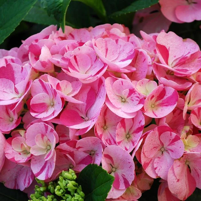Buy Sweet Fantasy™ Hydrangea online. This awesome variegated flowered mophead is going to brighten up your landscape with it’s pink and white striped flowers. They almost appear as if someone threw paint on them! These are set on top of green leaves and it will have a compact growth habit.